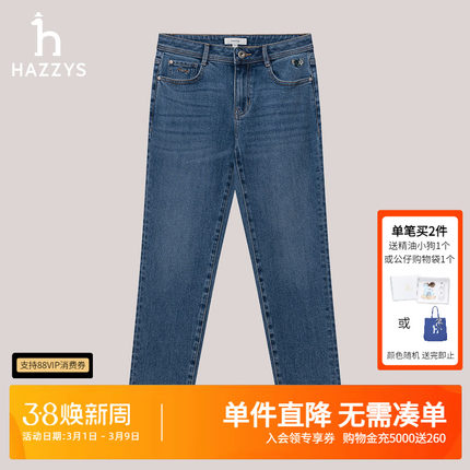 Hazzys哈吉斯女装牛仔裤女士修身小脚裤时尚舒适修身长裤气质下装
