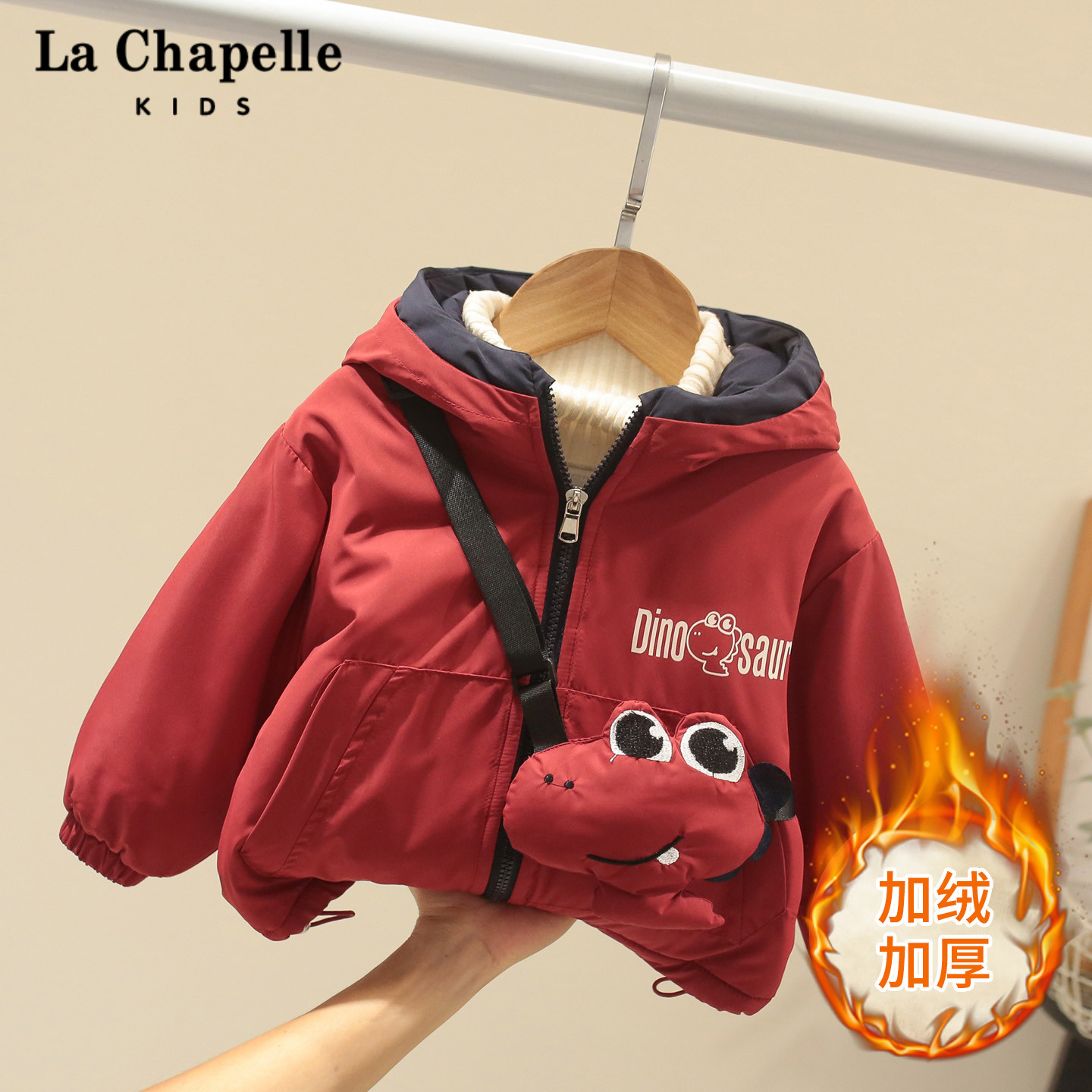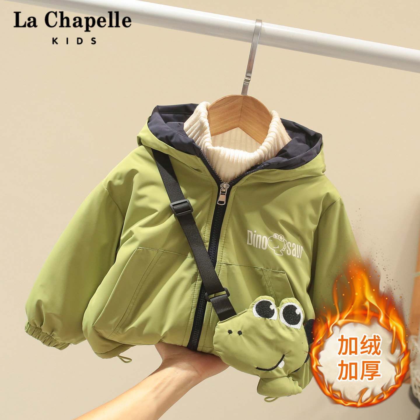 拉夏贝尔男童棉服秋冬装外套儿童加绒加厚冲锋衣宝宝冬季新款洋气