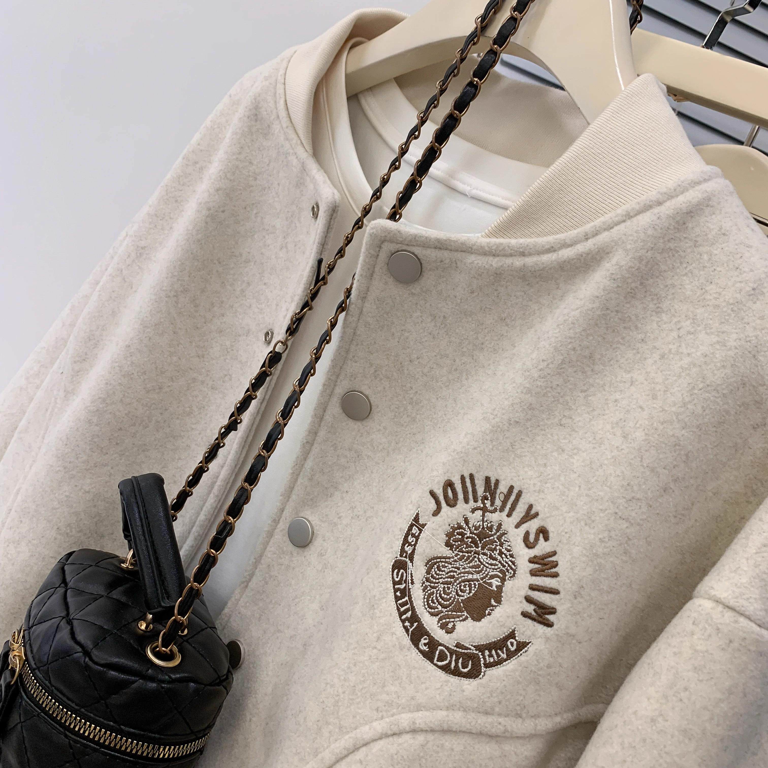 韩版常规绣花美式棒球服外套女