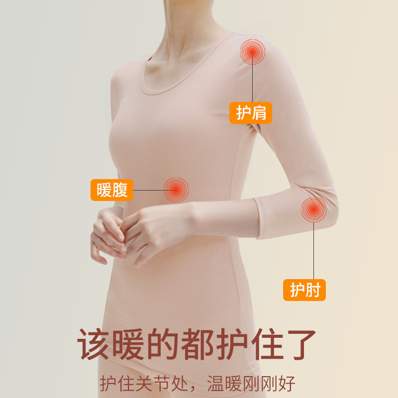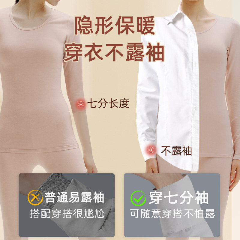 纯棉七分袖保暖内衣女中袖上衣秋冬季半袖秋衣T恤内搭隐形打底衫