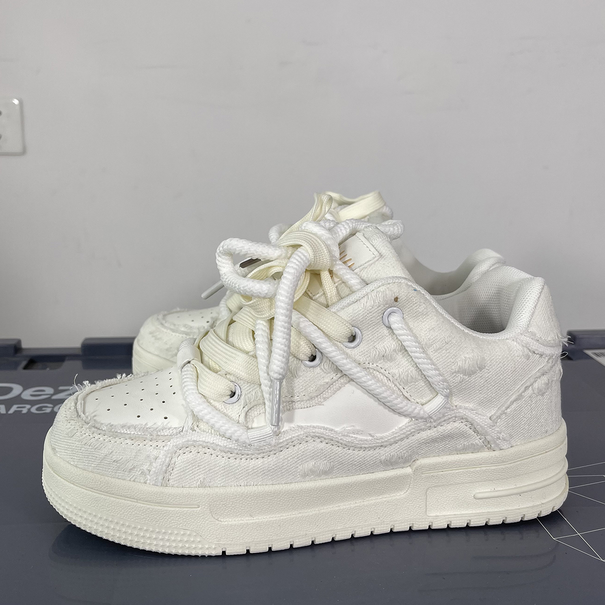 国潮男鞋子小众原创设计滑板鞋复古奶fufu休闲运动厚底情侣小白鞋