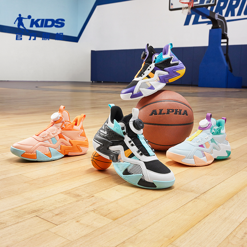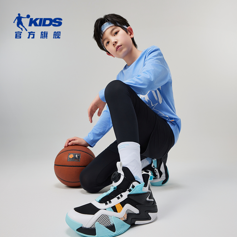 乔丹儿童篮球鞋男大童鞋子2025新款童鞋旋钮扣网面专业男童运动鞋