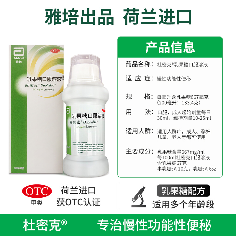 【杜密克】乳果糖口服溶液66.7%*200ml*1瓶/盒原研进口杜密克乳果糖口服液瓶装治便秘
