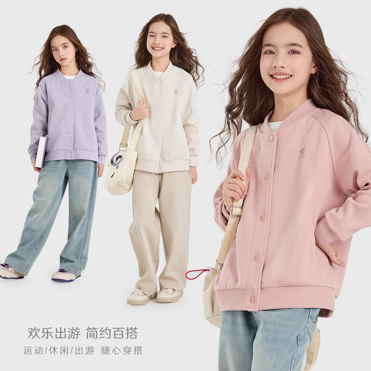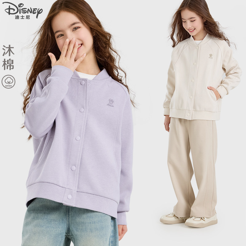 迪士尼女童外套春秋装儿童棒球服中大童开衫女孩洋气上衣百搭童装