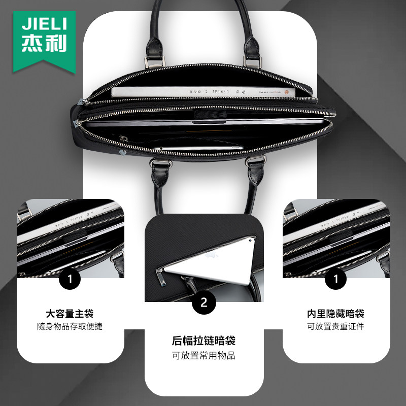 杰利公文包男款商务手提会议合同文件收纳大容量JL869电脑包定制