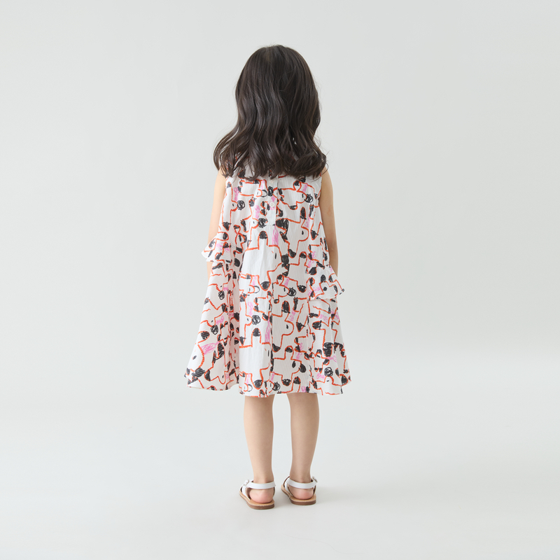 papa爬爬夏季儿童无袖连衣裙肌理感女童裙子荷叶边可爱