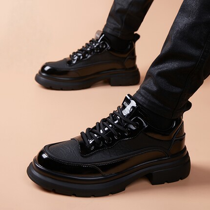 运动皮鞋男真皮2026春季新款透气厚底内增高板鞋英伦青年休闲男鞋