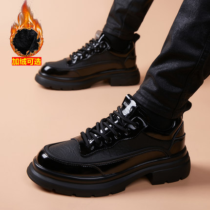 运动皮鞋男真皮2025冬季新款加绒厚底内增高板鞋英伦青年休闲男鞋