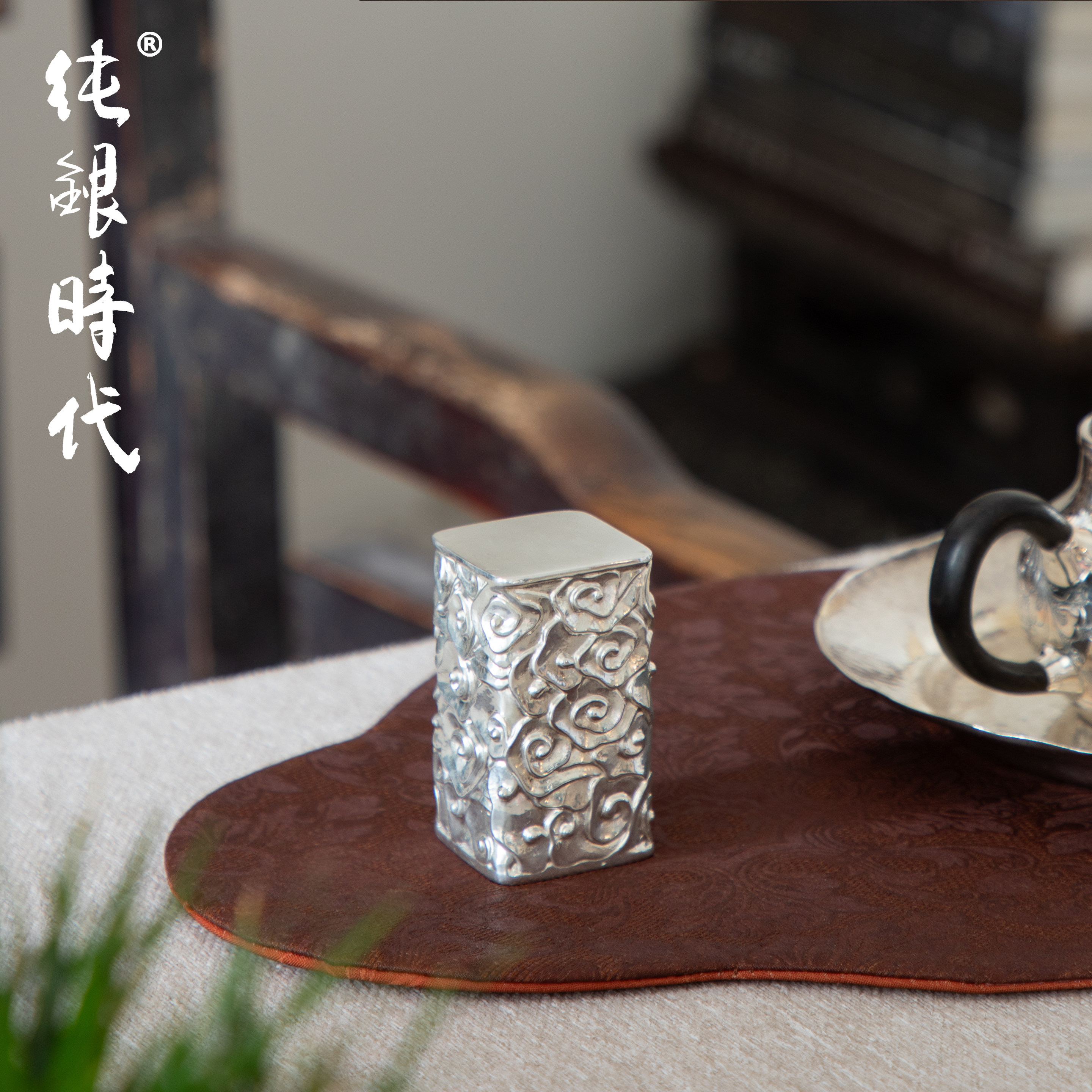 纯银时代手工錾刻祥云盖置盖托