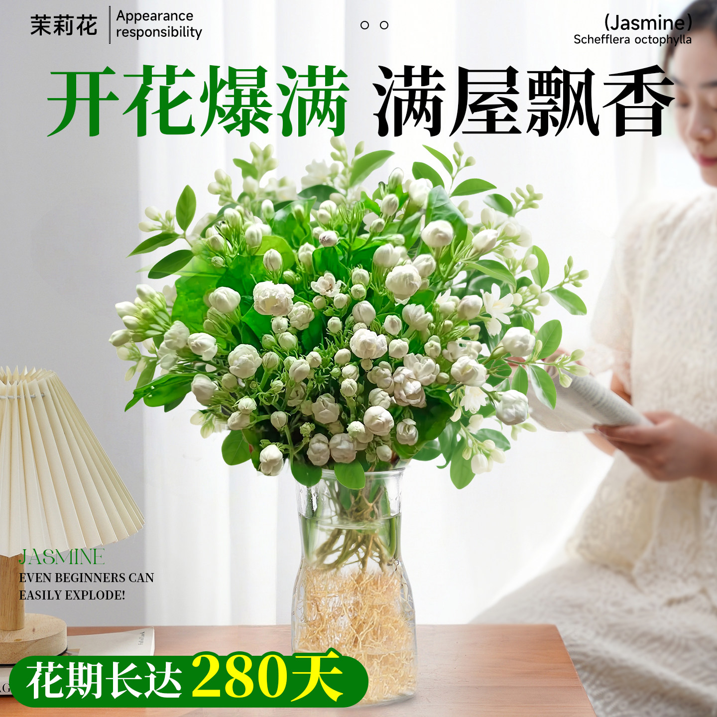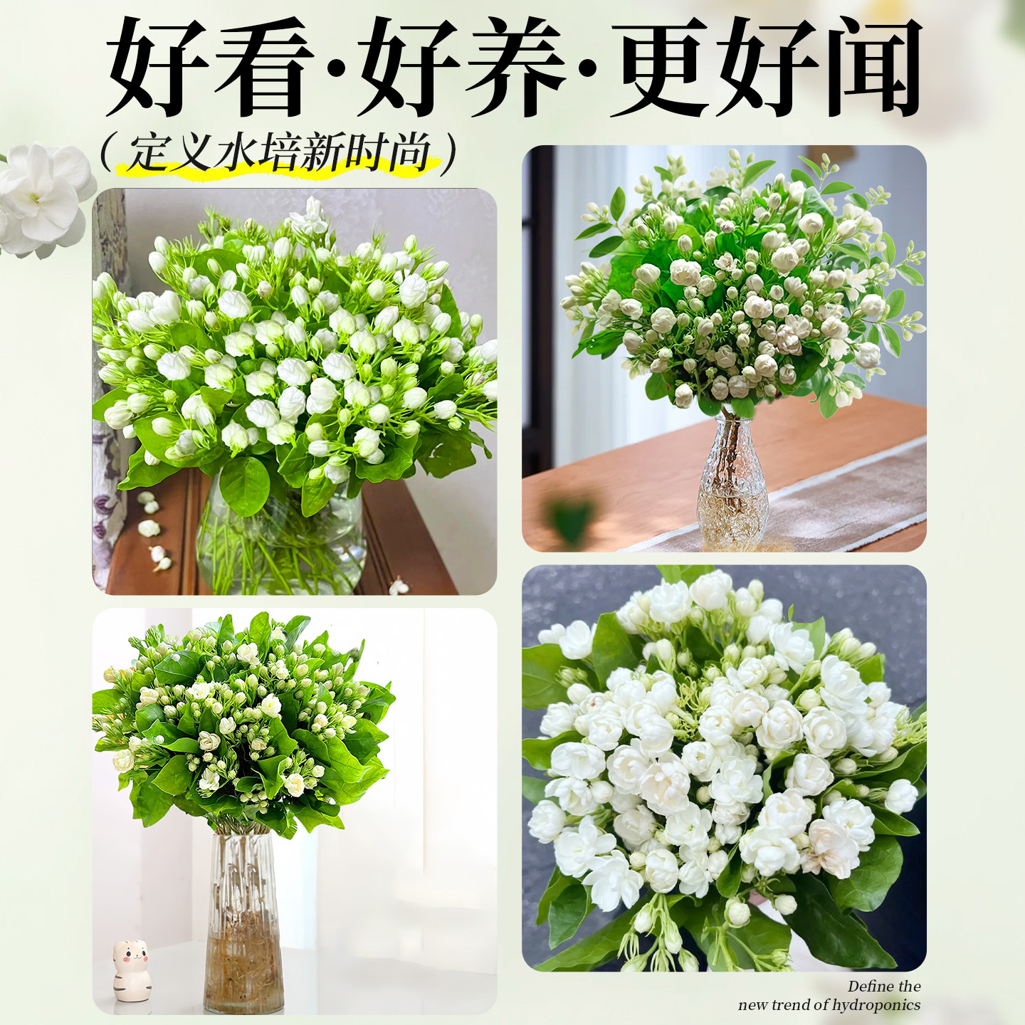 茉莉花水培植物盆栽带花苞办公室内桌面好养懒人鲜花绿植水养花卉