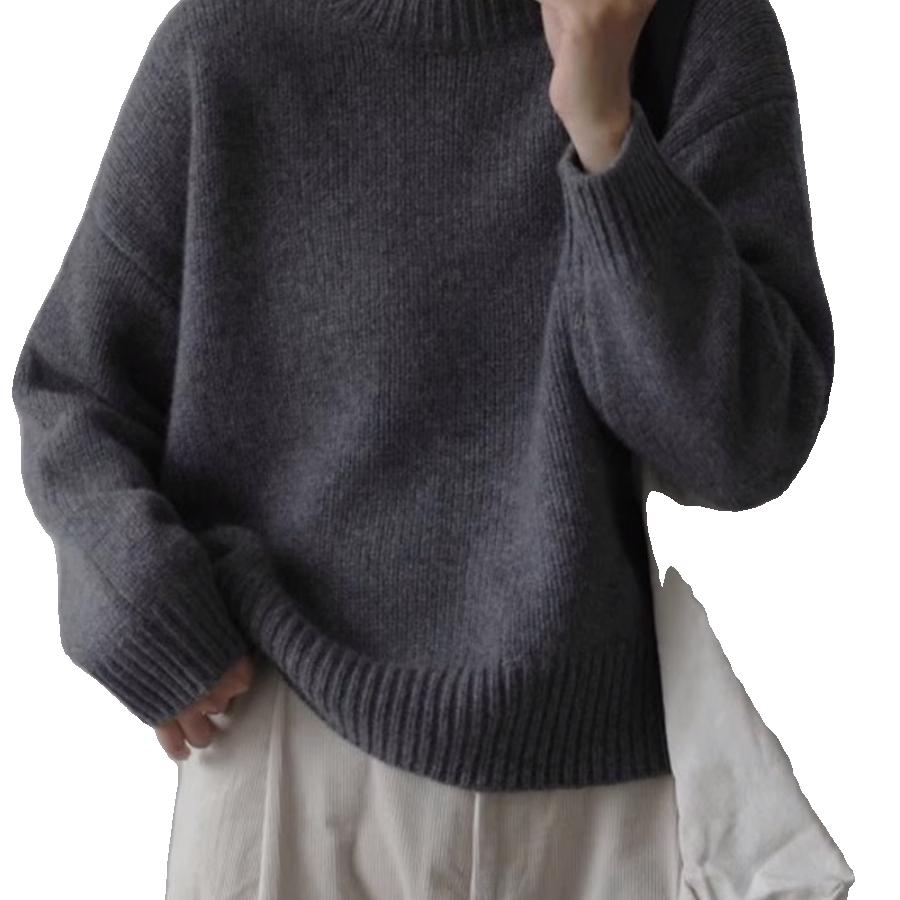 轻奢高级感羊绒衫女慵懒风宽松圆领套头加厚羊毛针织打底毛衣上衣