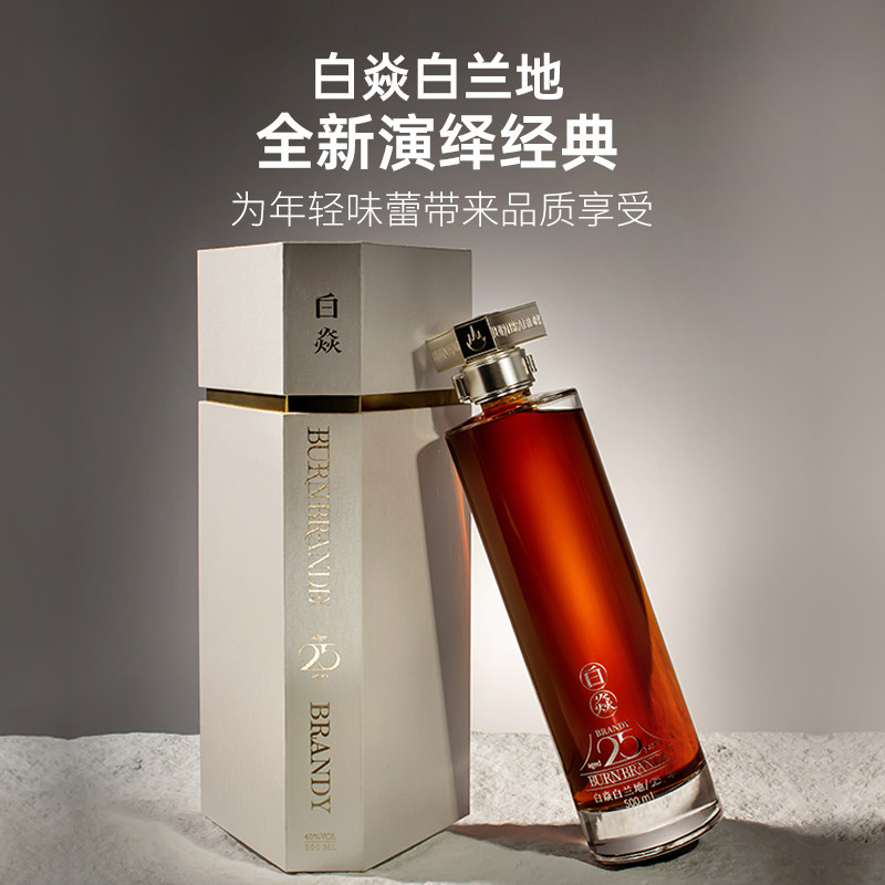 白焱白兰地40度XO洋酒25年法国进口酒液500ml官方旗舰店正品
