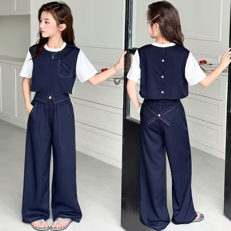 女童休闲百搭夏套装新款儿童洋气时髦中大童短袖短裤阔腿裤两件套