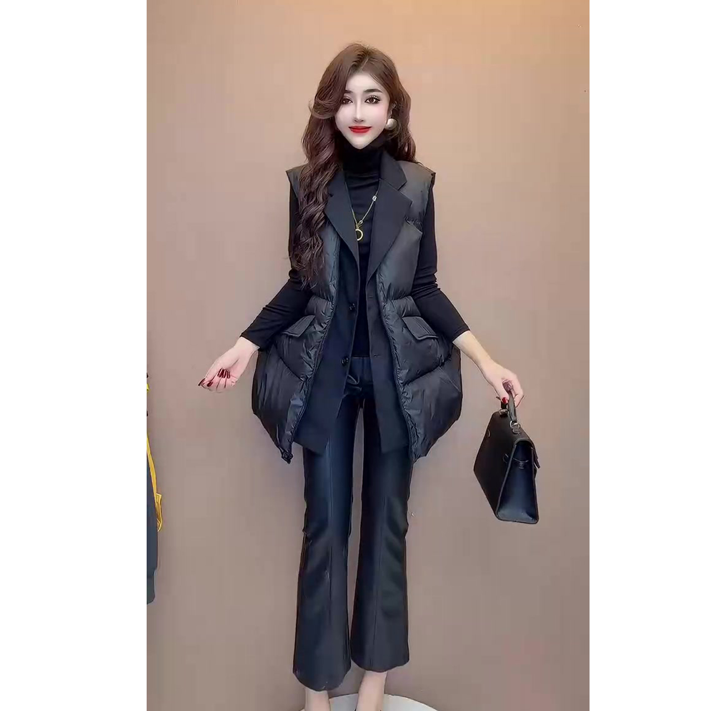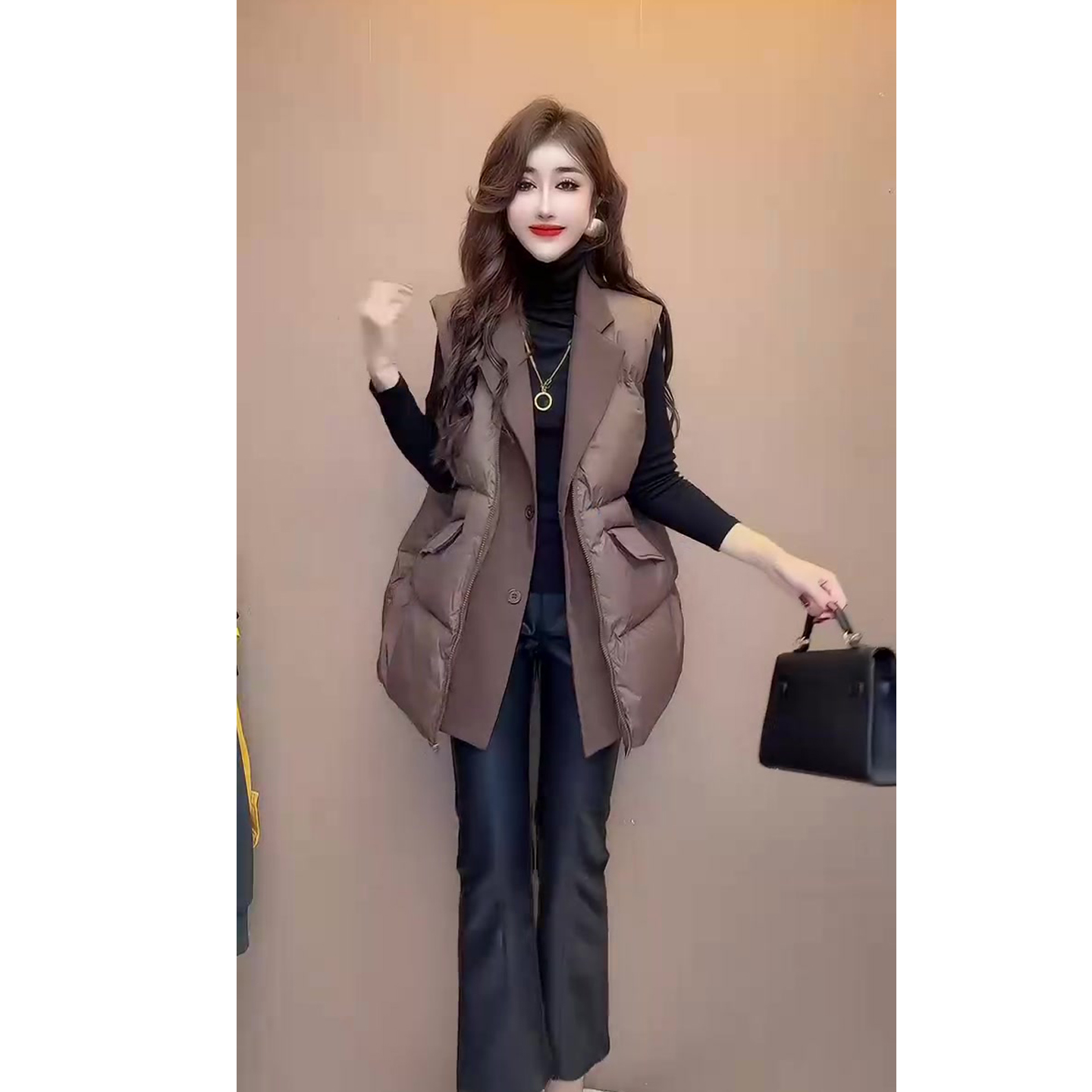 西装领拼接加棉马甲女秋冬新款保暖时髦气质韩版显瘦无袖上衣坎肩