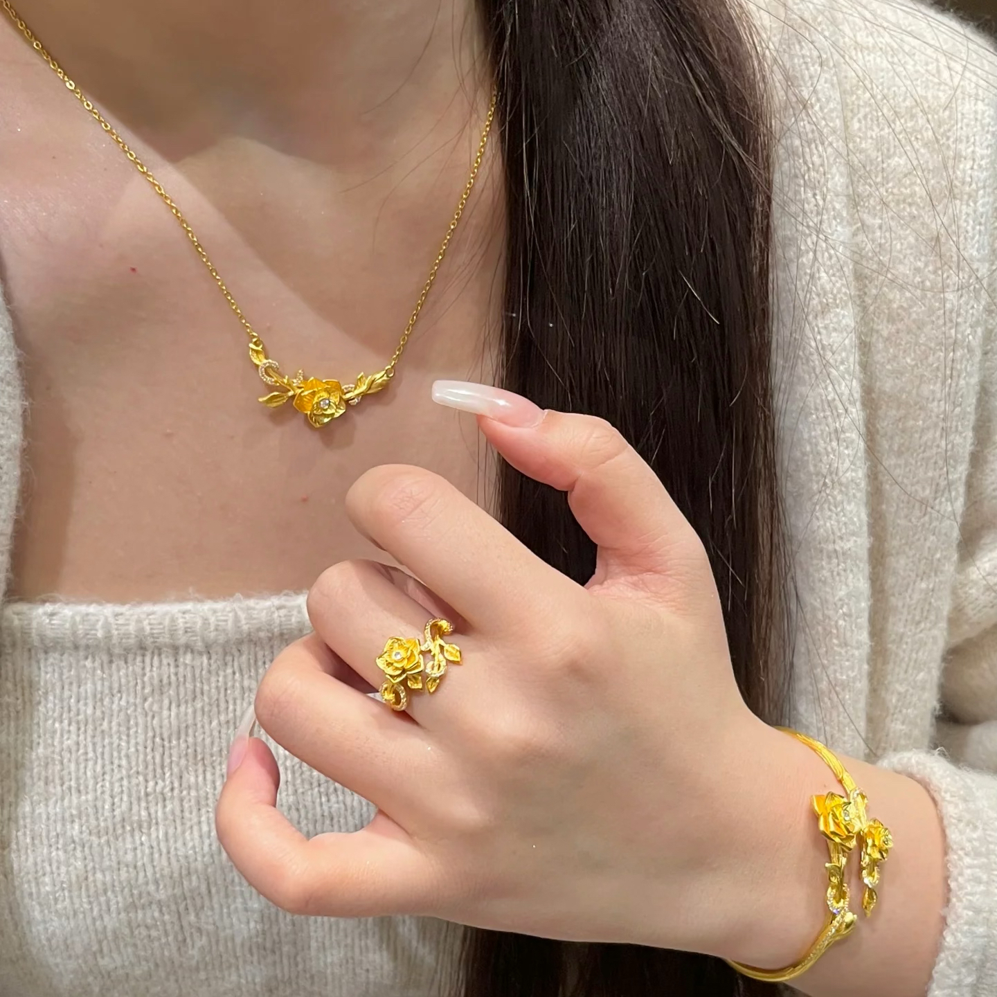 点钻玫瑰花沙金手镯花嫁仿真黄金色婚嫁结婚仿真三金轻奢送女友