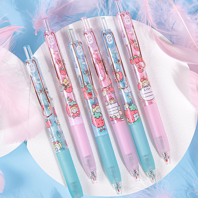 蜜桃说金属夹按动式中性笔水笔签字笔子弹头黑色0.5mm考试水笔 高颜值笔可爱的笔 好看的笔 女生笔少女心可爱