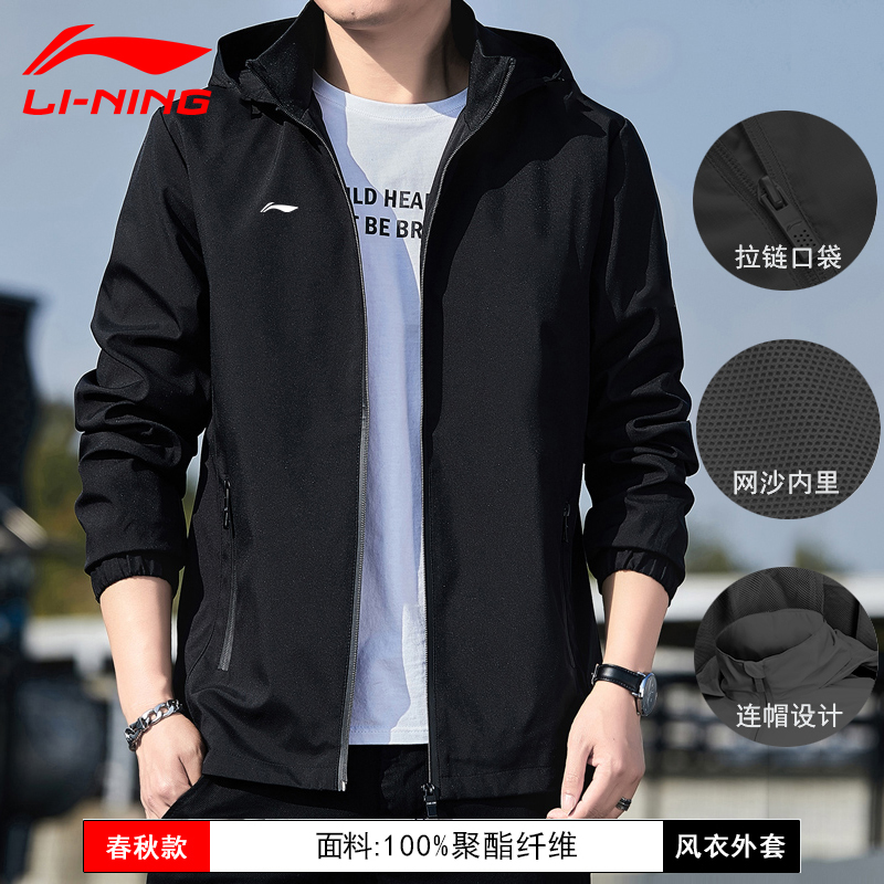 李宁外套男士秋冬季防风连帽上衣宽松跑步冲锋训练服开衫运动风衣