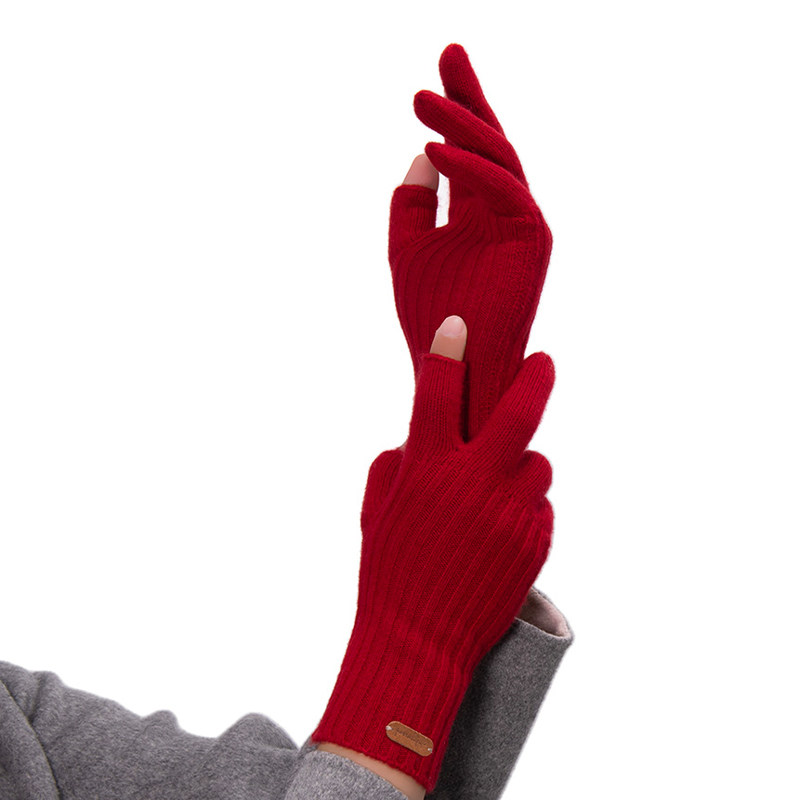 100%纯山羊绒触屏手套分指保暖