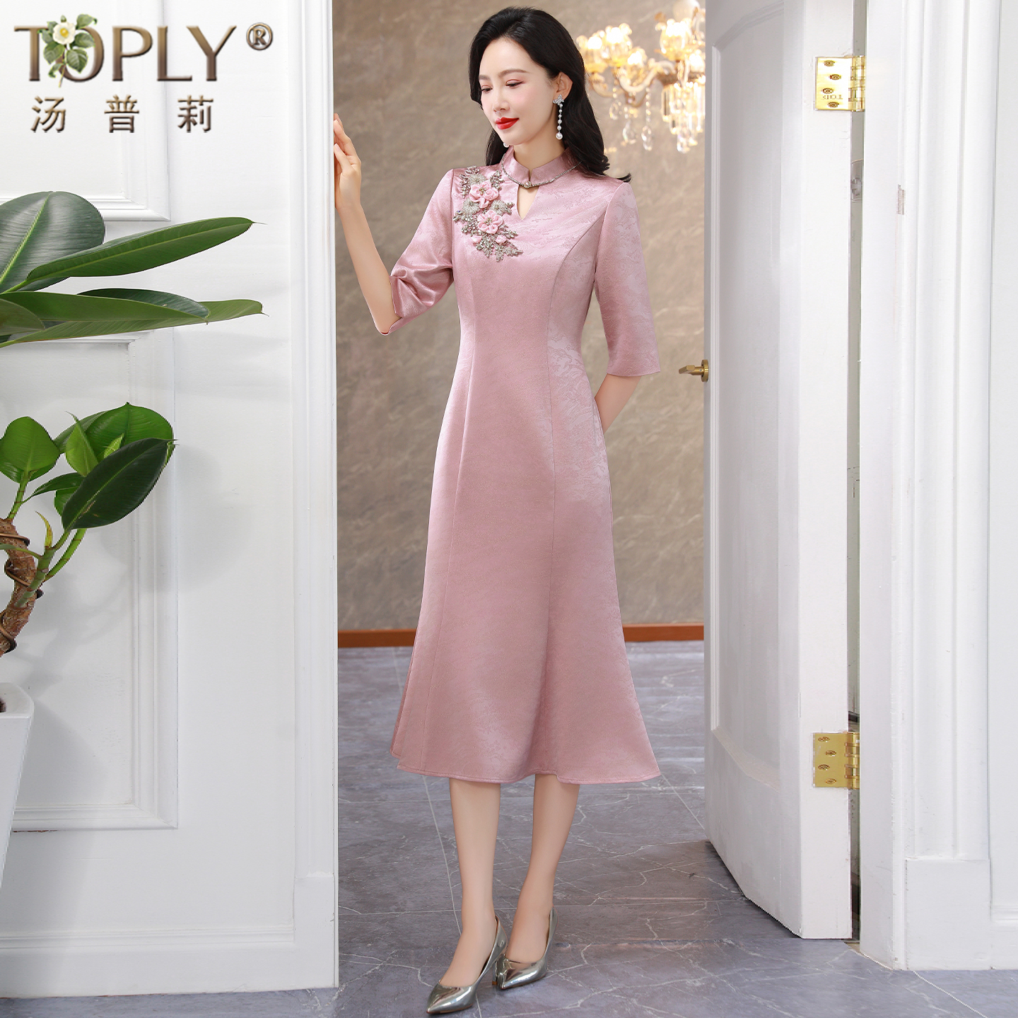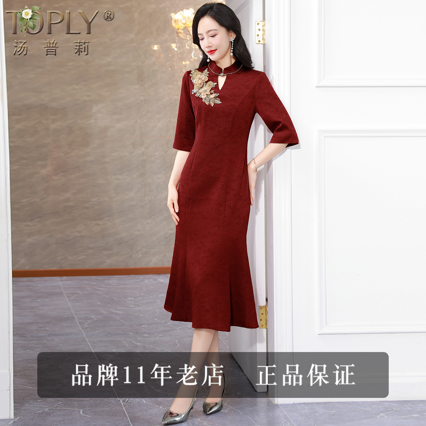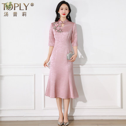 品牌高档喜妈妈婚宴礼服结婚喜服喜婆婆装2025新款改良旗袍连衣裙