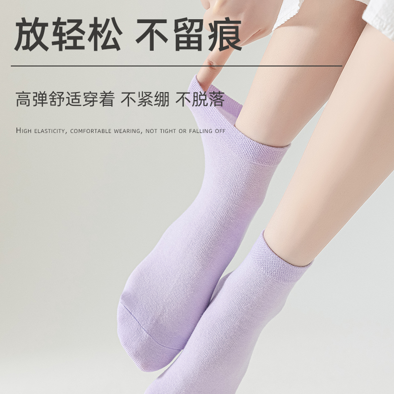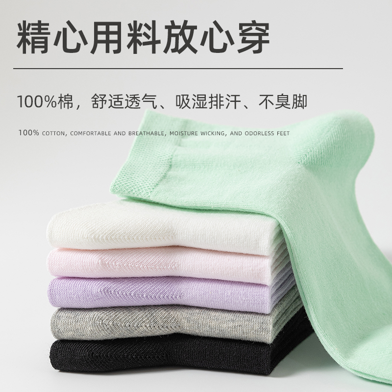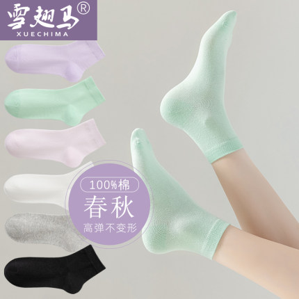 雪翅马袜子女纯棉中筒袜吸汗100%棉袜夏季网眼薄款女士春秋防臭袜
