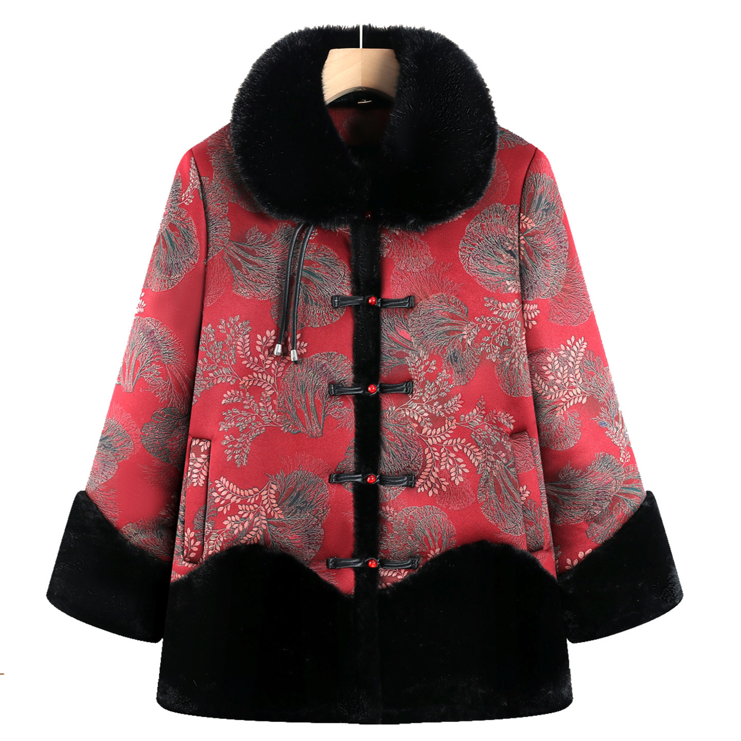 冬季高档新中式老年人棉衣女加厚妈妈装外套加绒奶奶棉袄太太衣服