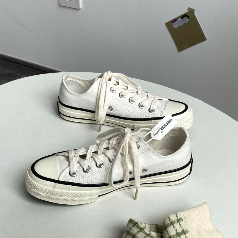 1970s经典复刻男女同款白色低帮帆布鞋复古港味ulzzang百搭潮流鞋