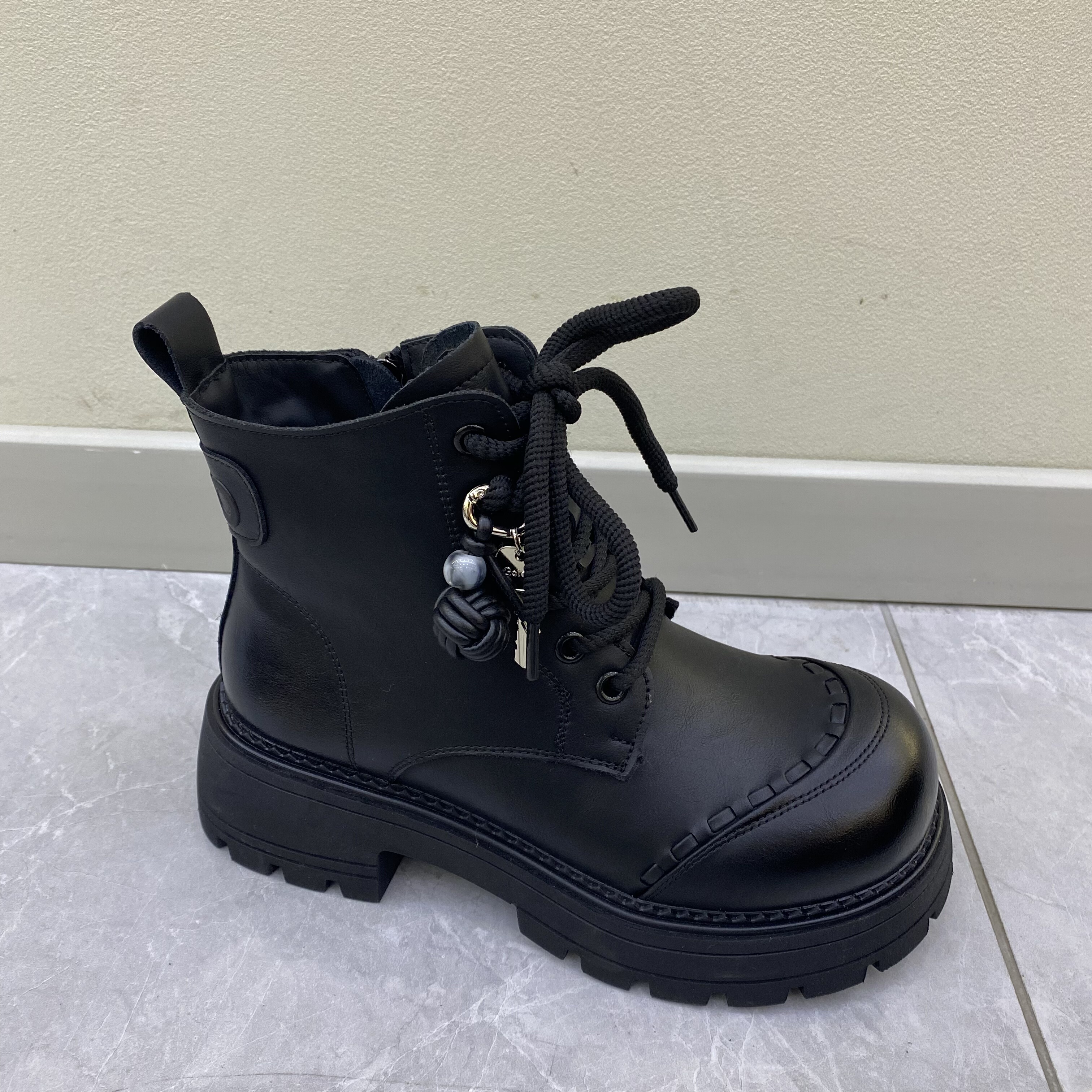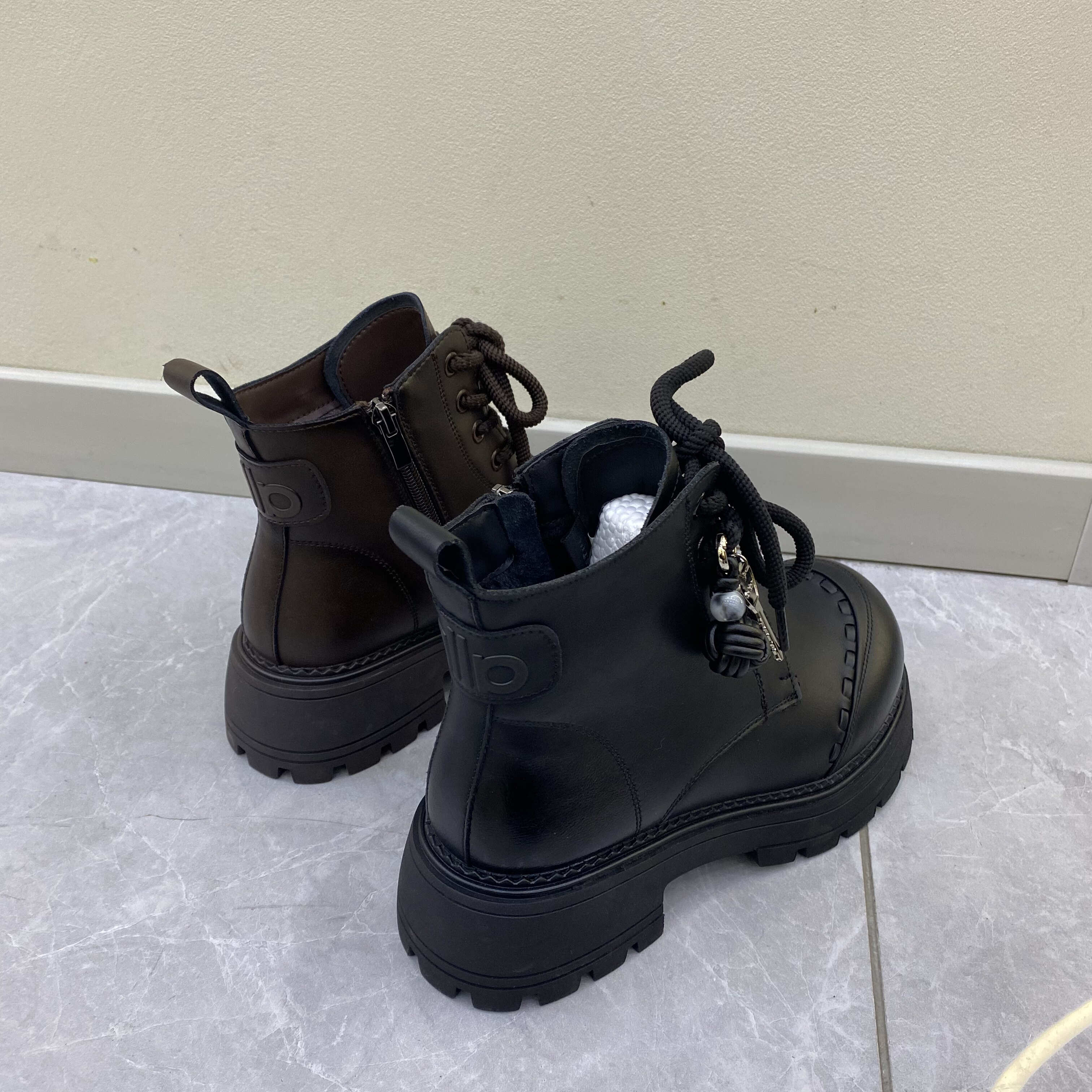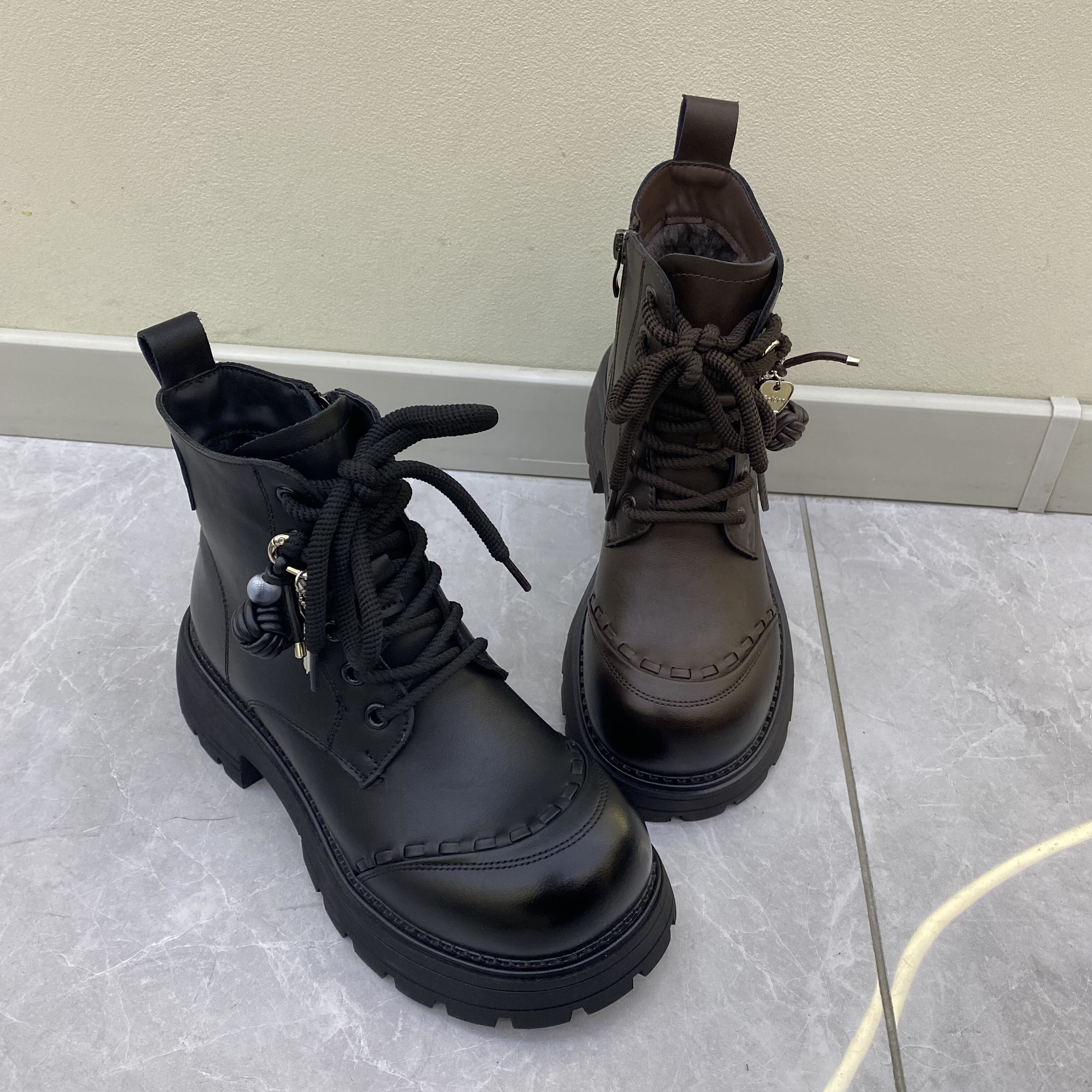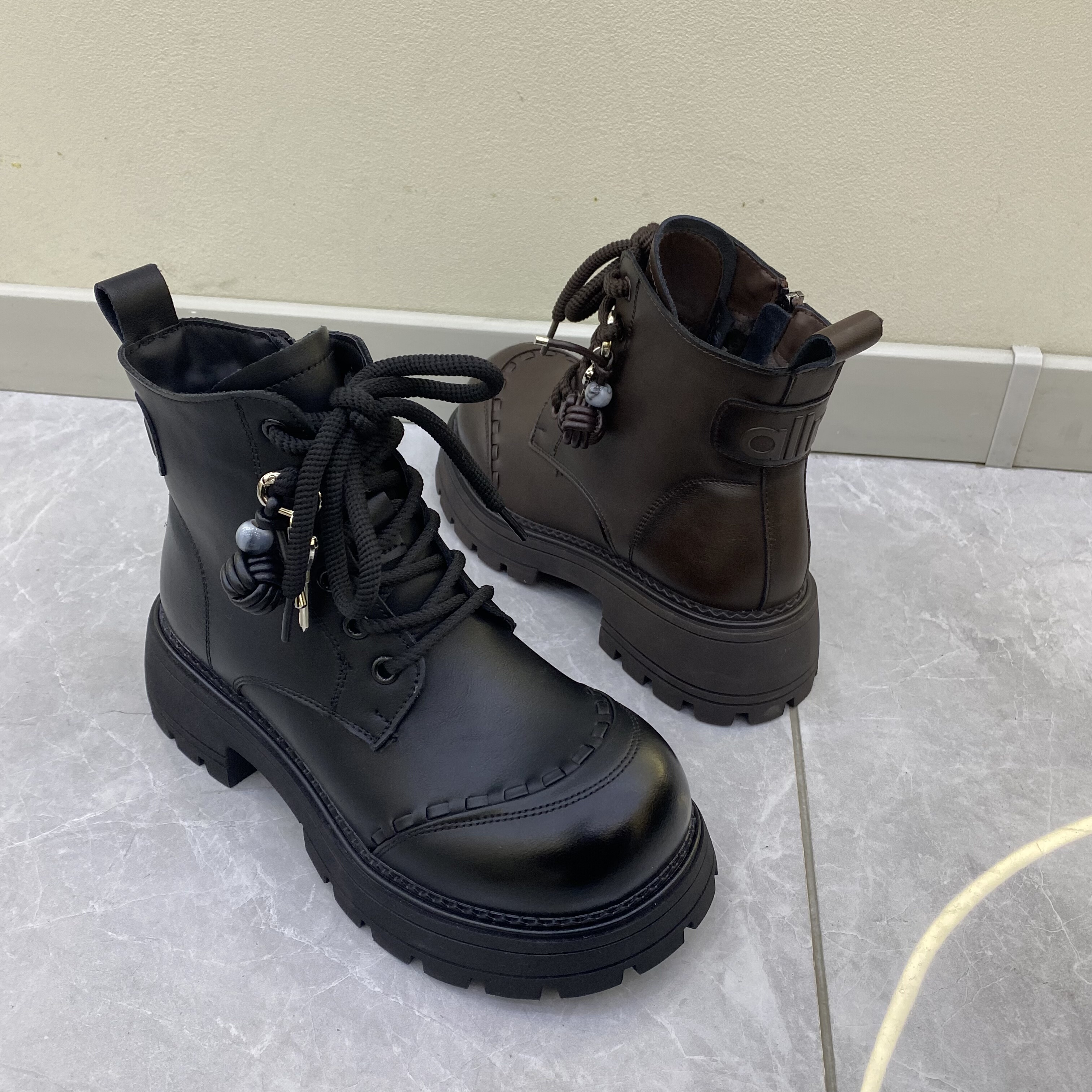 2025冬季女靴防滑厚底加棉短靴真皮大棉马丁靴系带女棉靴女潮靴