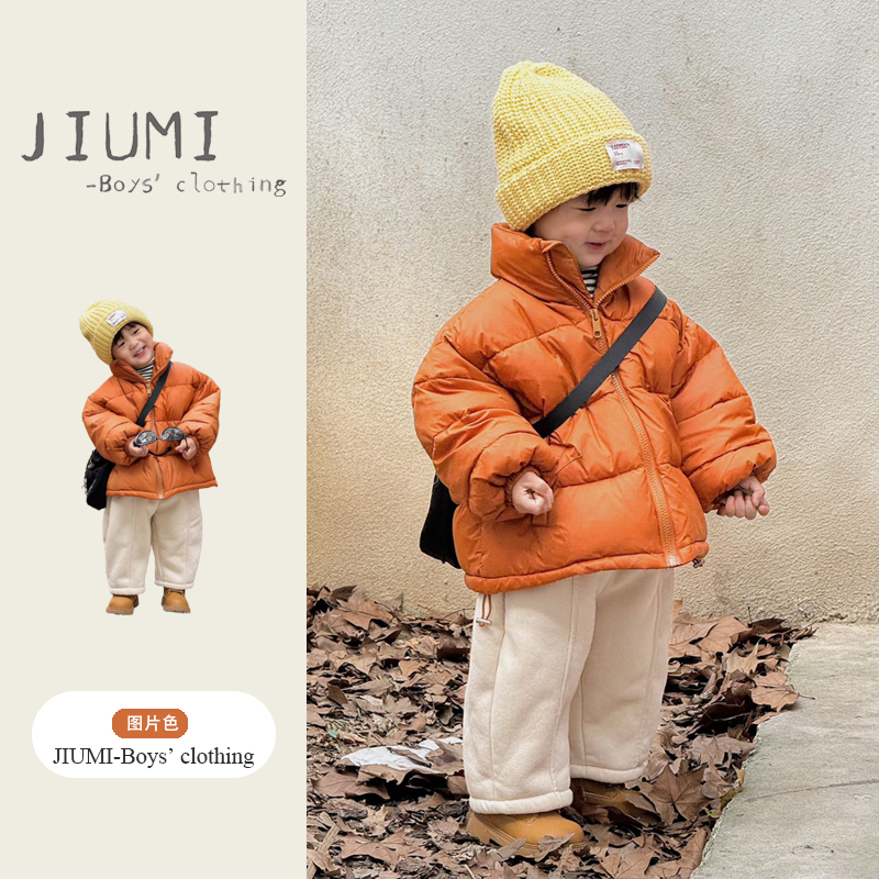 男童冬装羽绒服男宝休闲短款外套面包服儿童加绒长裤保暖冬季套装