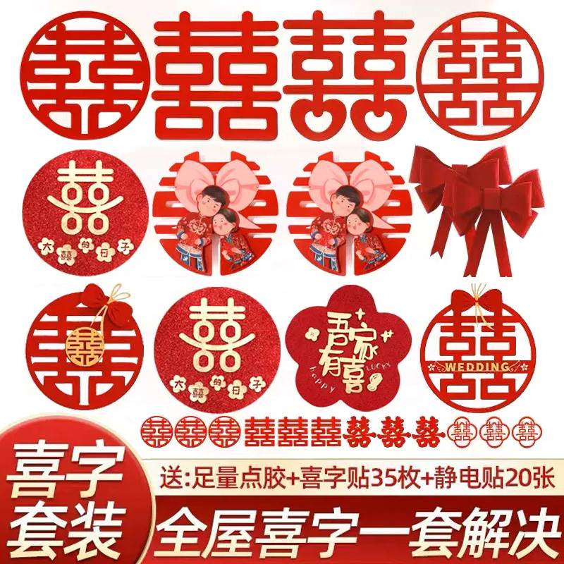 喜字结婚专用套装大门门贴囍字窗户房门贴纸喜字贴婚庆用品大全