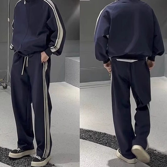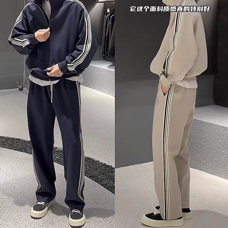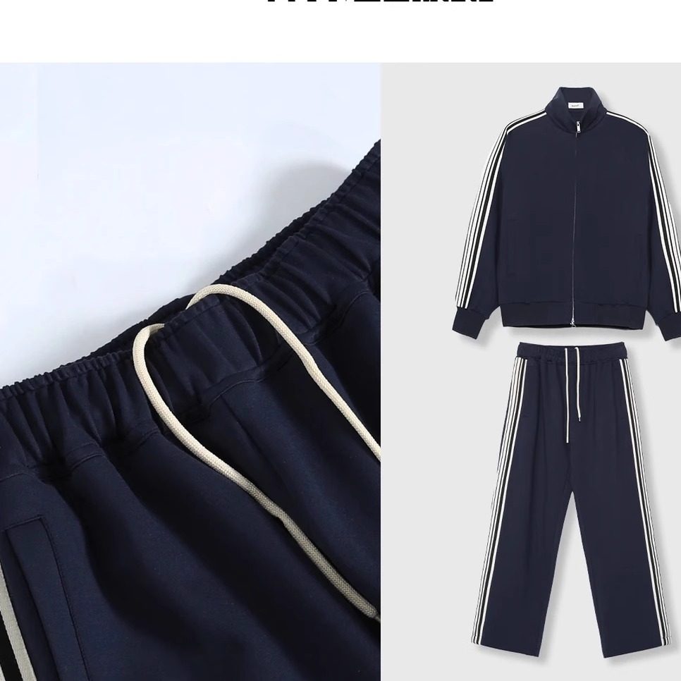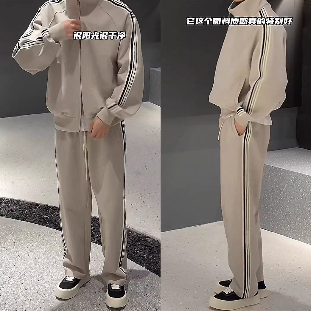 秋季新款竖条纹休闲运动套装男士韩系潮流卫衣直筒卫裤情侣两件套