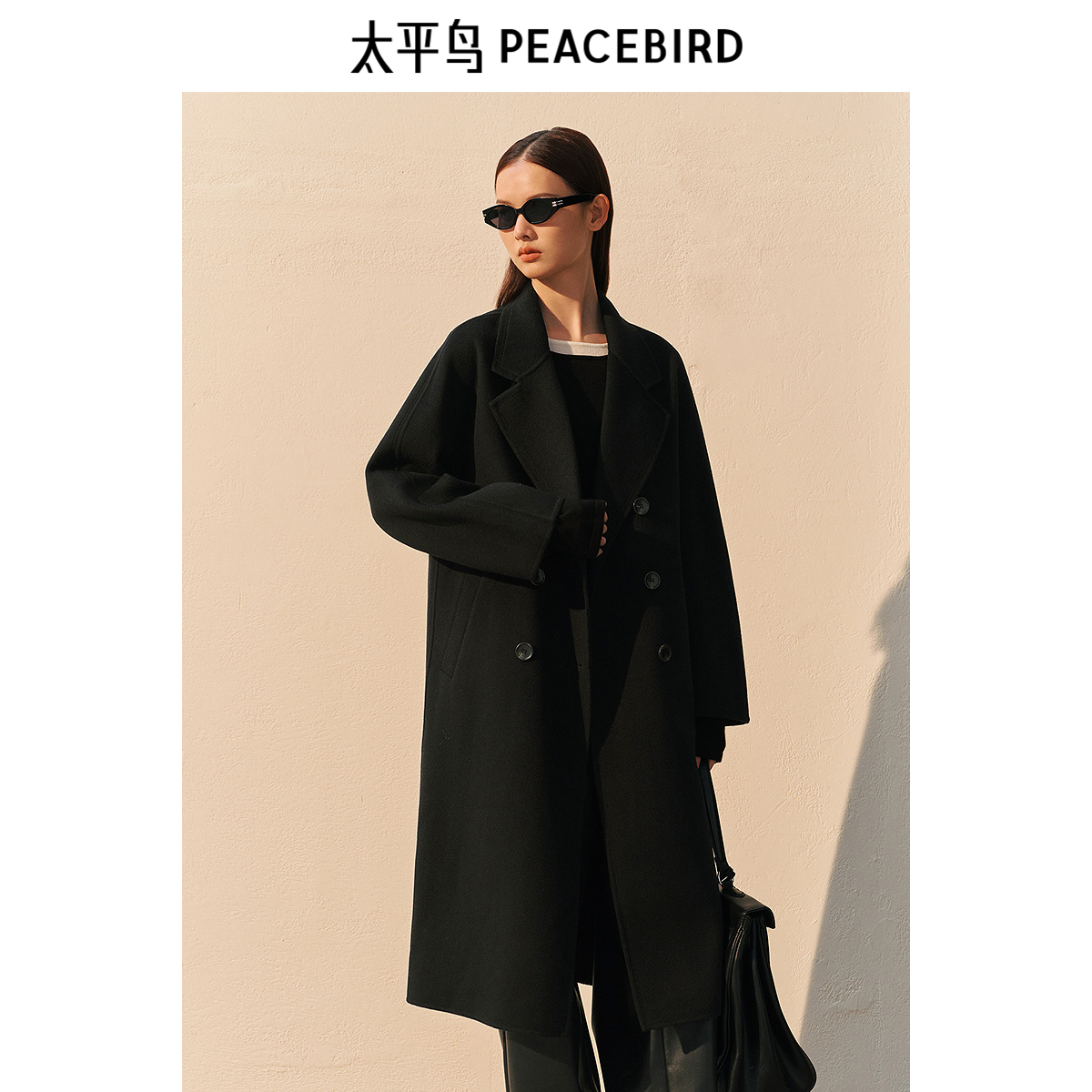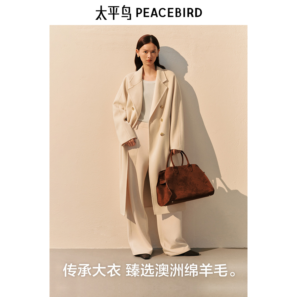 太平鸟大师甄毛系列重磅高支全羊毛双面呢大衣女冬新款白色外套女