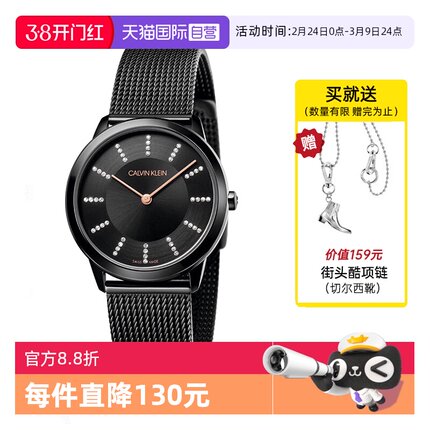 【自营】黑精灵Calvin klein瑞士制造手表简约正品石英表情人节礼