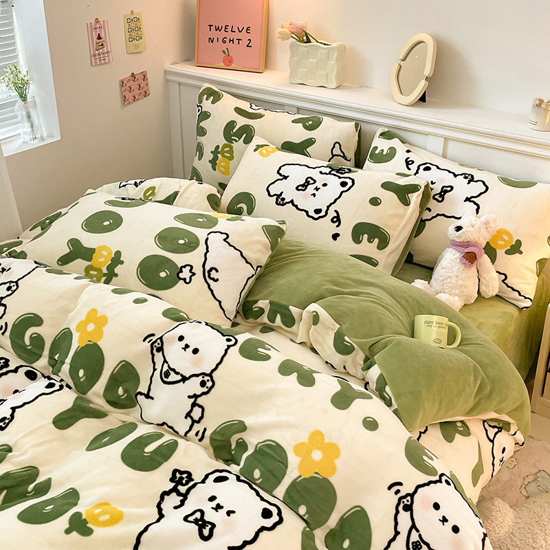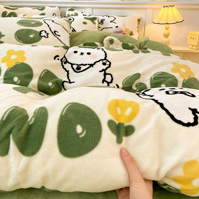 猫人小清新加厚保暖牛奶绒四件套