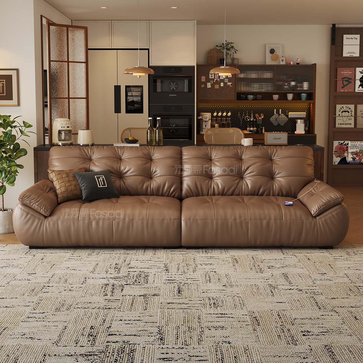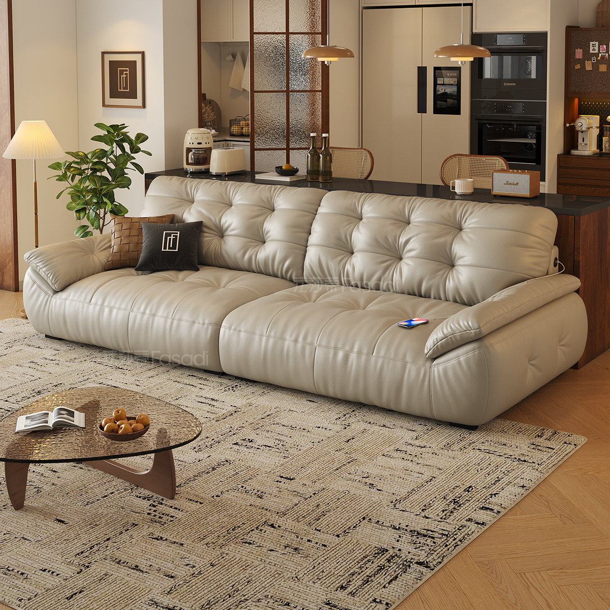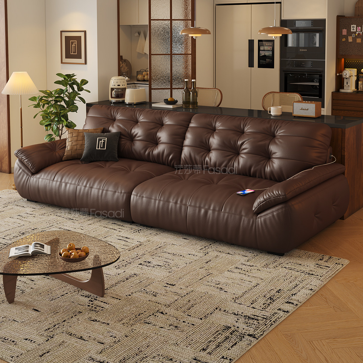 法莎蒂云朵真皮沙发头层牛皮意式复古客厅咖啡色中古太空云端沙发
