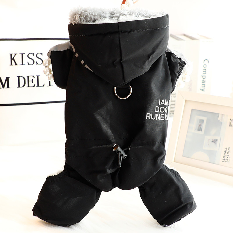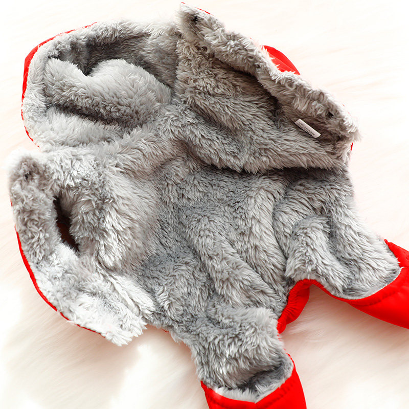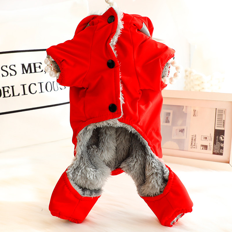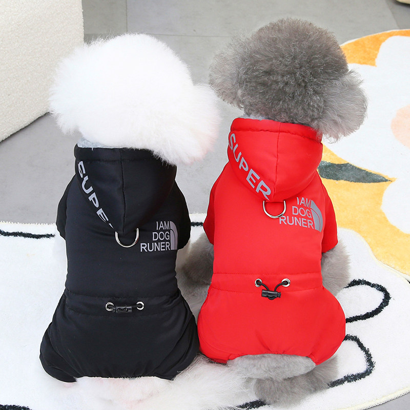 狗狗衣服秋冬装厚款四脚冲锋衣红色可牵引棉衣小型犬泰迪宠物6463