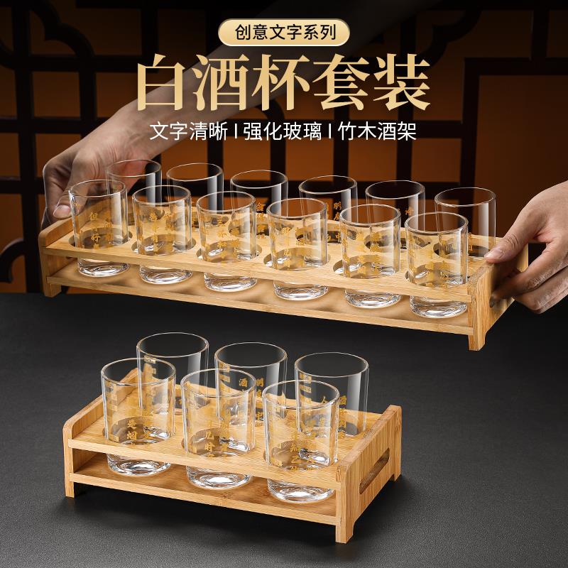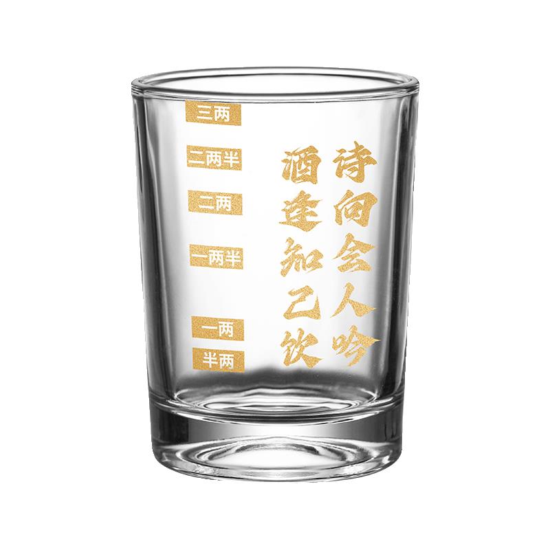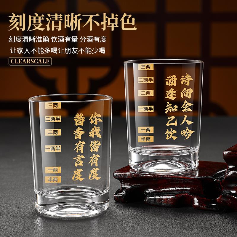 文案二两白酒杯子带刻度钢化玻璃杯防摔高档轻奢酒具套装烈酒小酒