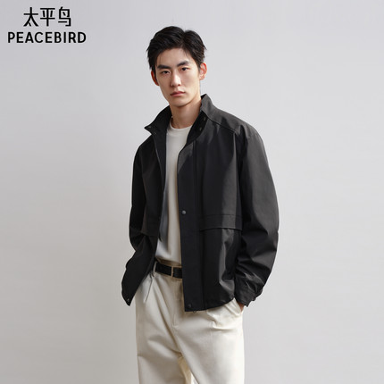 太平鸟男装立领通勤行政夹克秋冬拼接宽松茄克男士休闲外套时尚