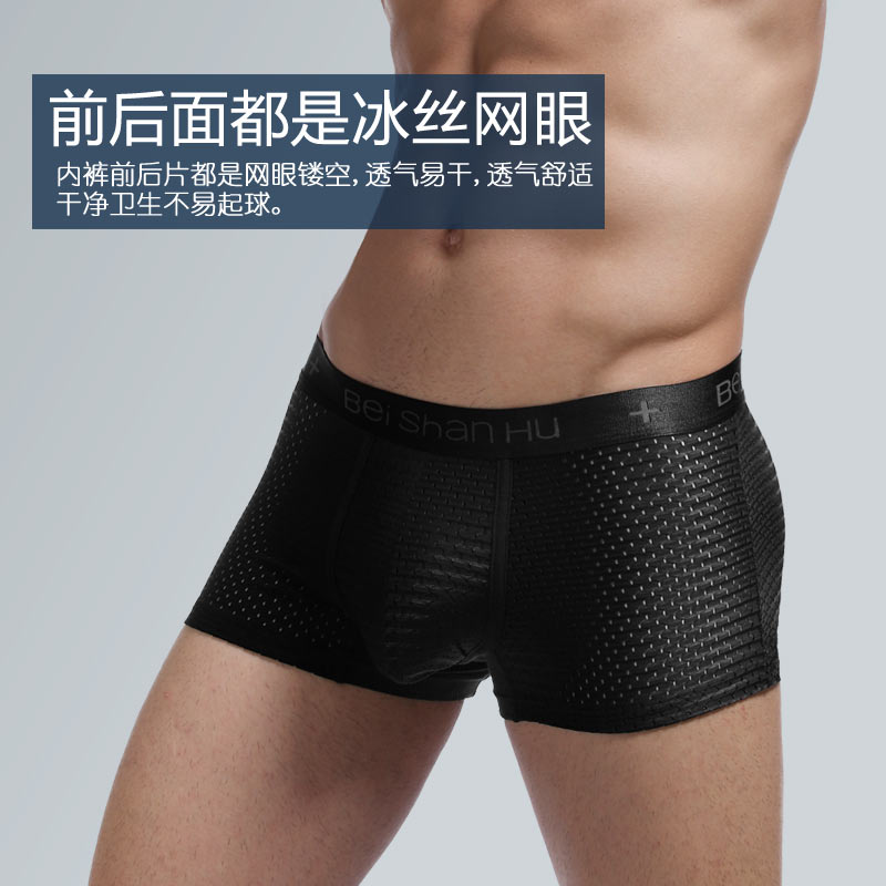夏季3条盒装男士内裤网眼性感冰丝平角裤超薄透气镂空大码四角