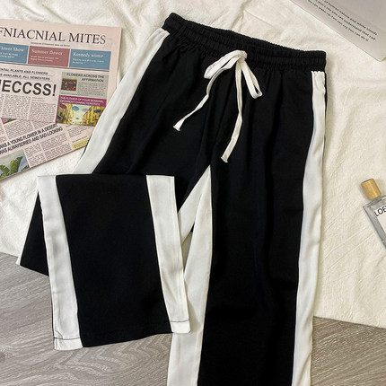 直筒宽松撞色拼接休闲裤运动西裤