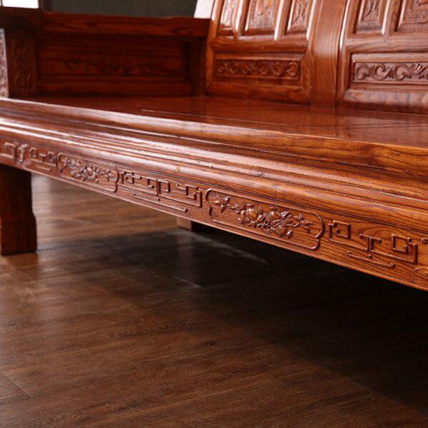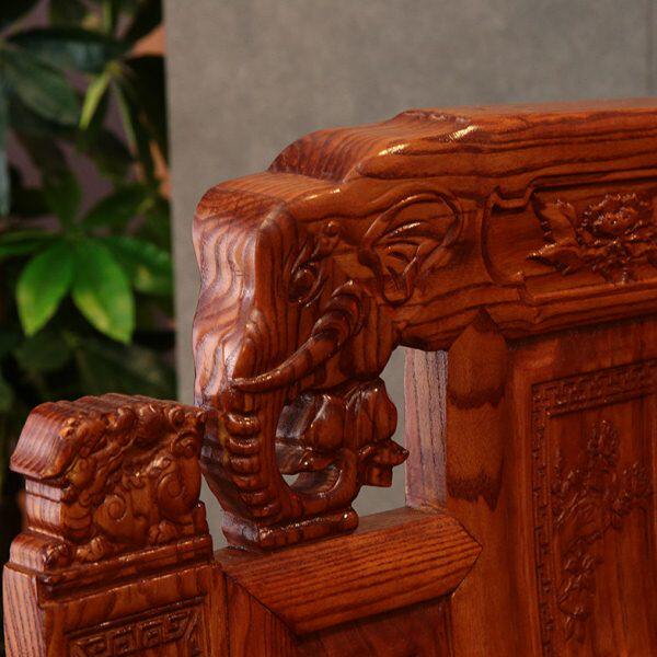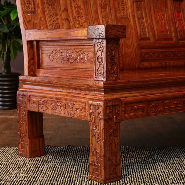 中式实木组合沙发客厅整装实木家具南榆木仿古雕花如意象头沙发