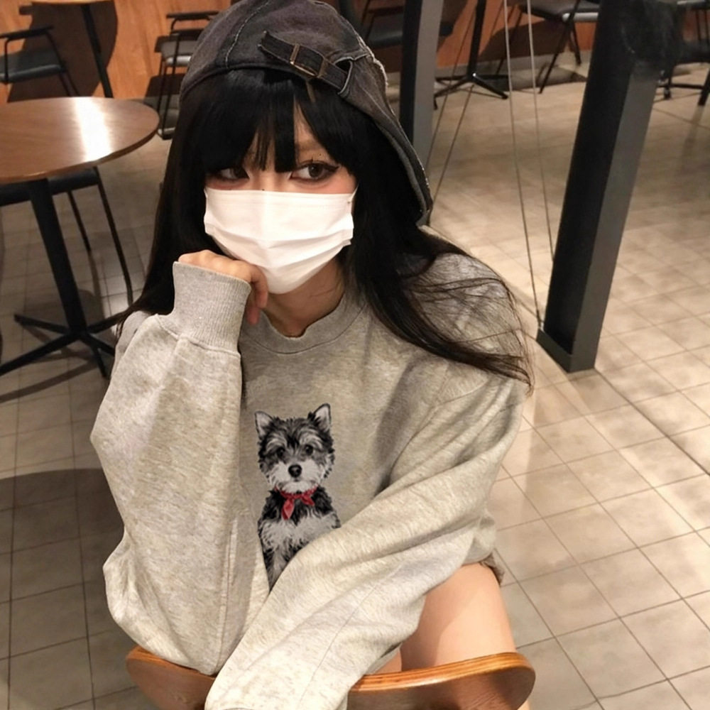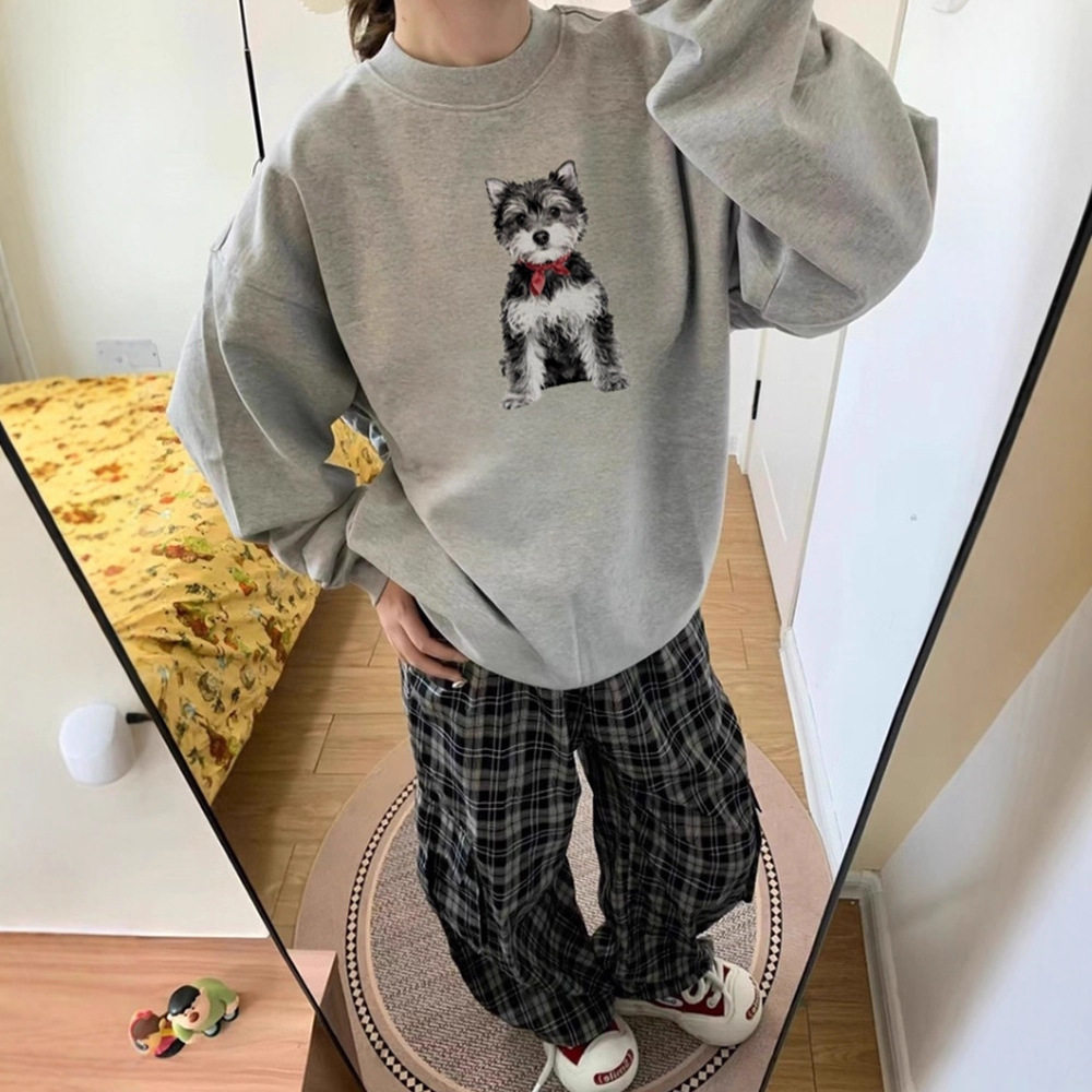 AE灰色加绒加厚圆领卫衣女秋冬新款休闲宽松套头长袖上衣ins潮