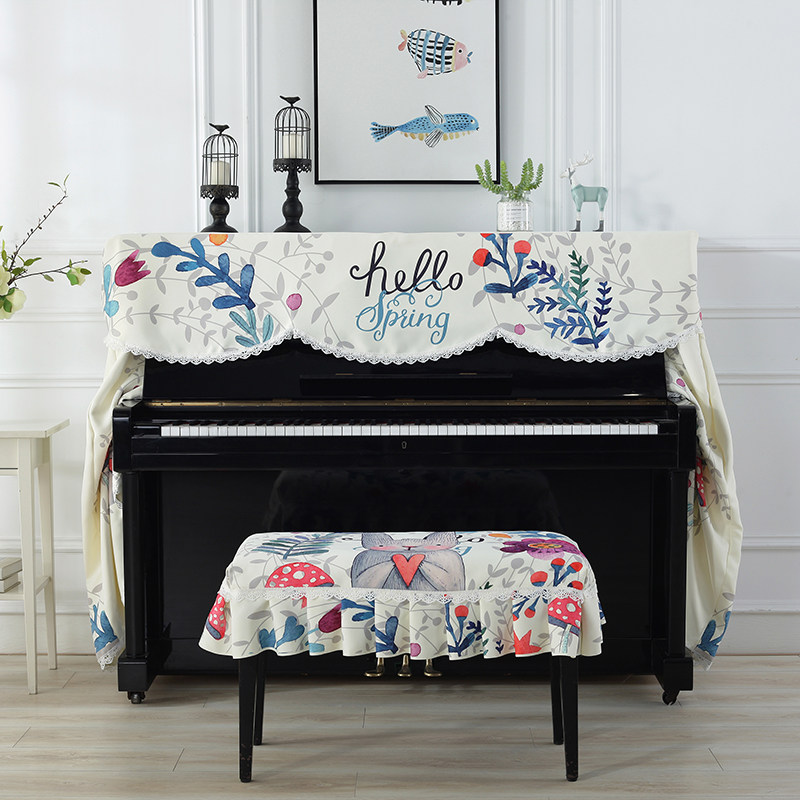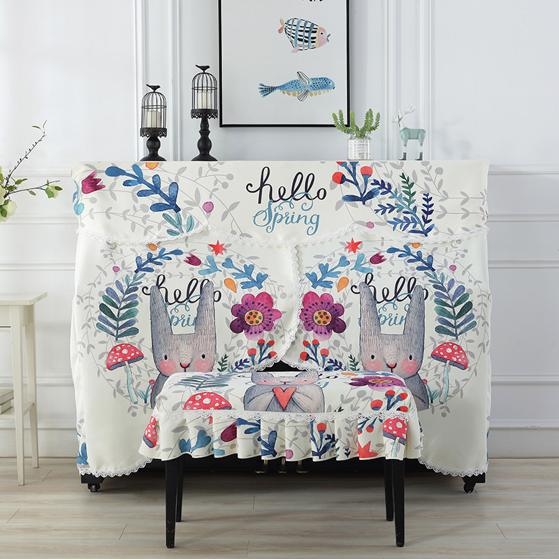韩式布艺钢琴罩卡通钢琴布盖布防尘罩雅马哈布艺全包钢琴套琴凳罩