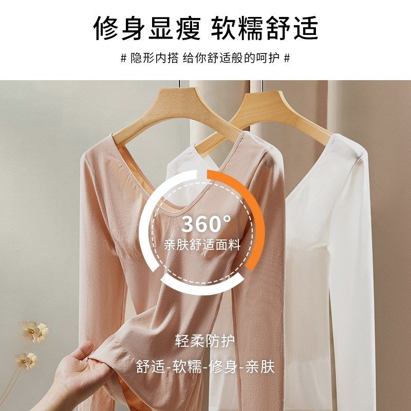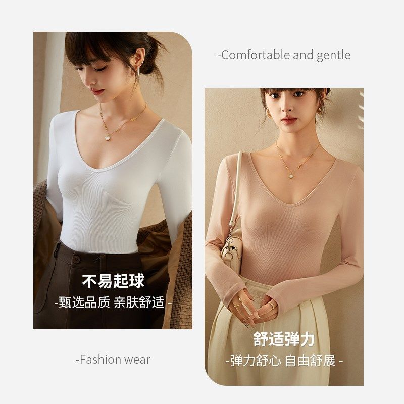 白色保暖内衣女超薄款收腹收腰塑身美体上衣低领大U领秋衣打底衫