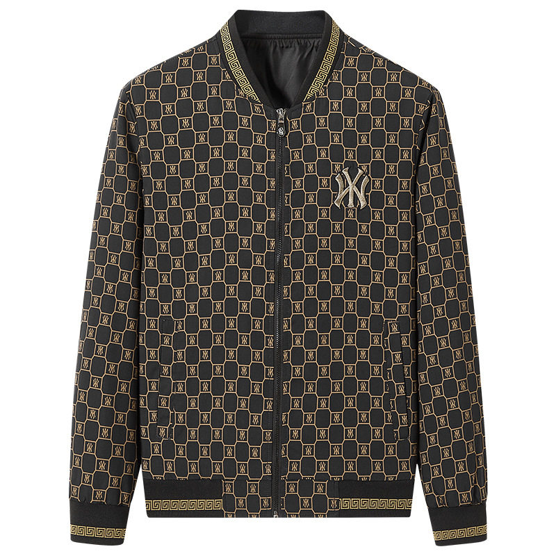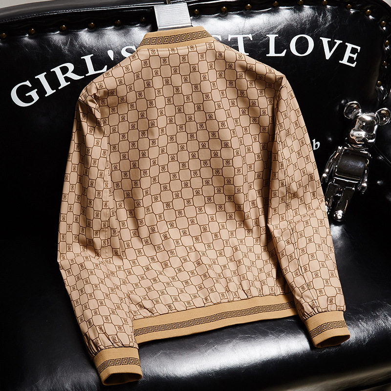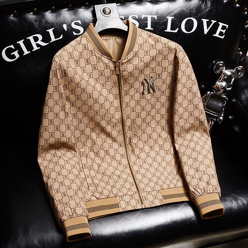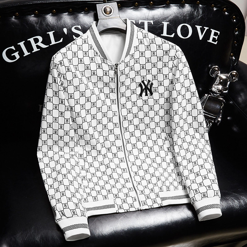 潮牌立领四季修身格子字母夹克新