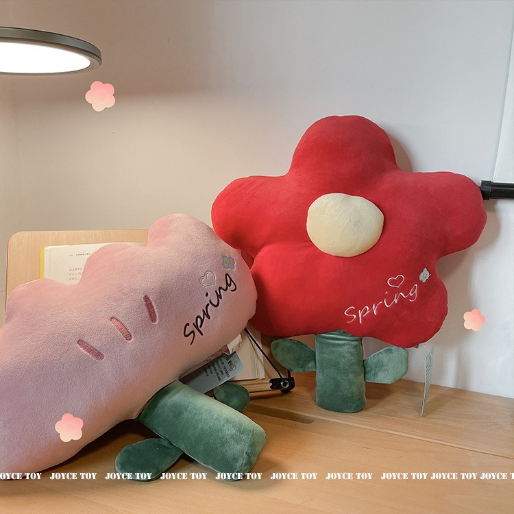 小红花抱枕女生睡觉床上靠垫玩偶毛绒玩具可爱郁金香花朵网红公仔