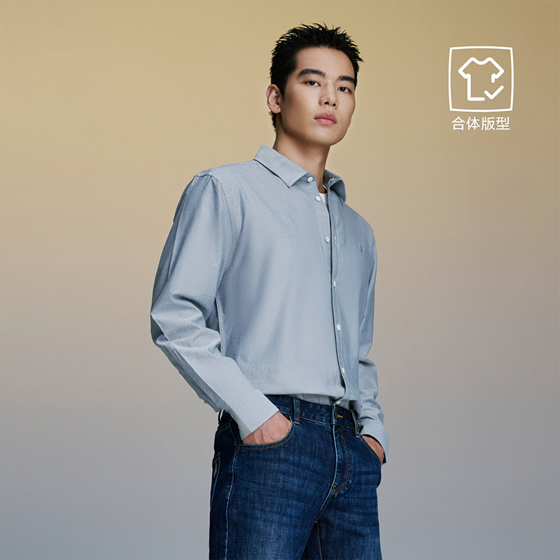 海澜之家纯棉牛津纺长袖休闲衬衫