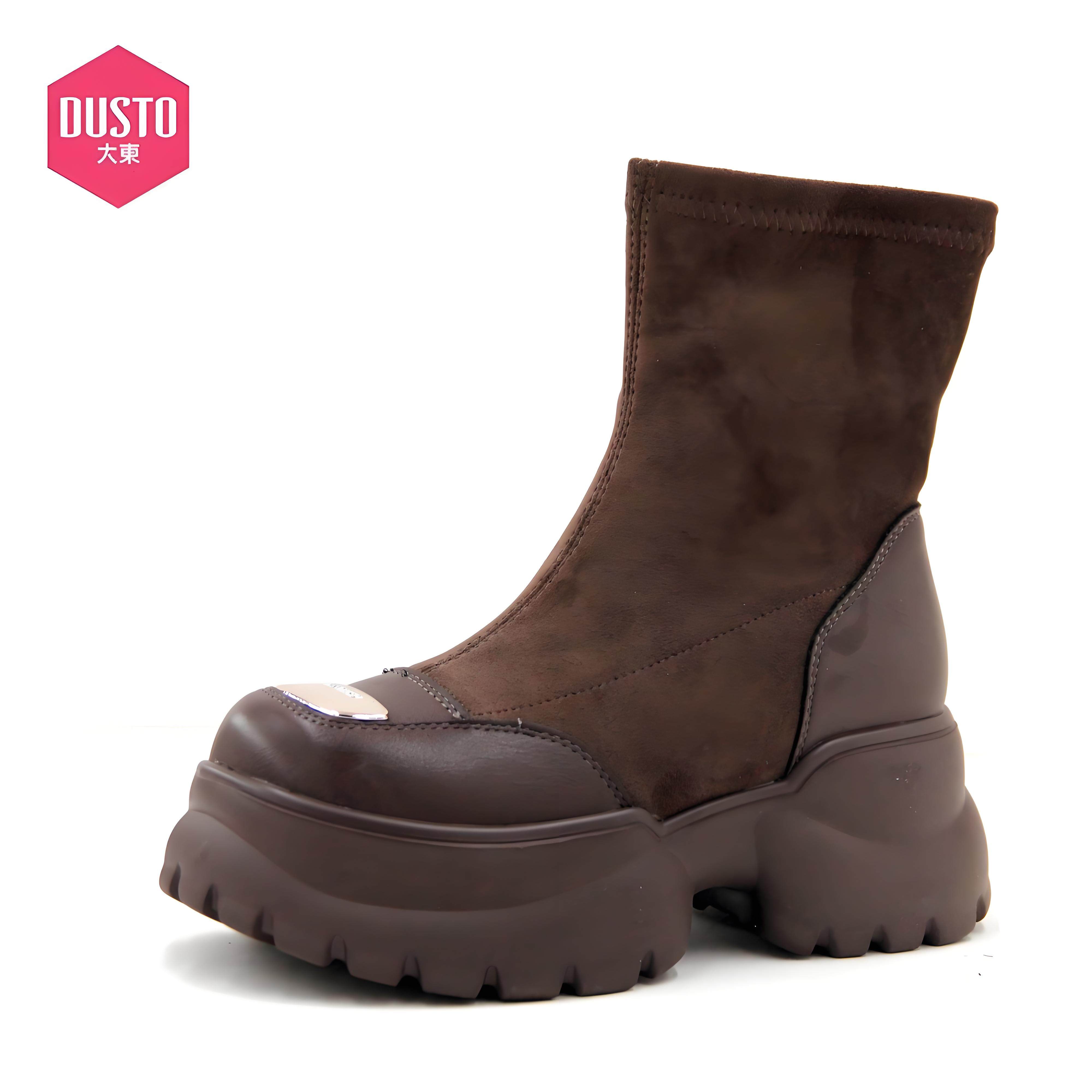 大东女2025新款秋冬季复古厚底短靴运动老爹小个子休闲弹力袜靴