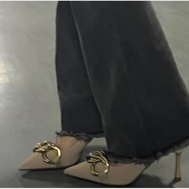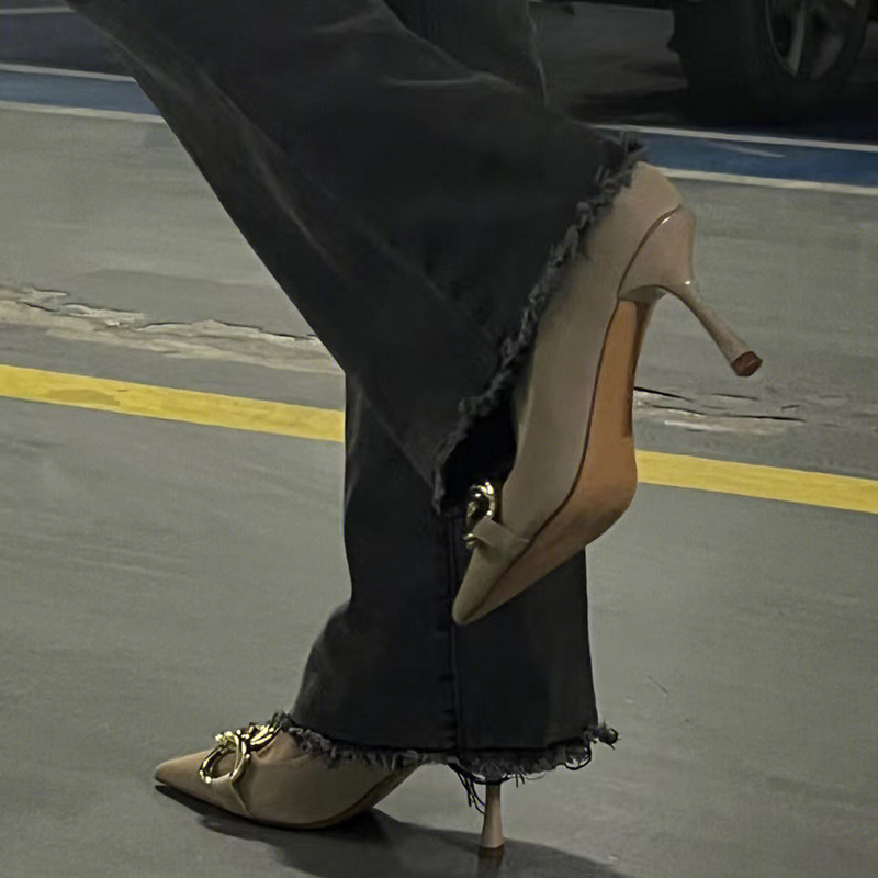 高跟鞋女2024年秋夏新款细跟设计感小众气质名媛法式裸色尖头单鞋