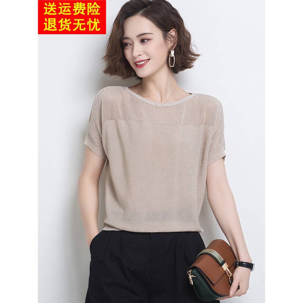 鄂尔多斯市短袖一字领t恤女士夏装桑蚕丝薄款体桖冰丝针织衫上衣