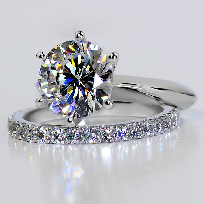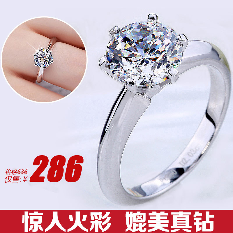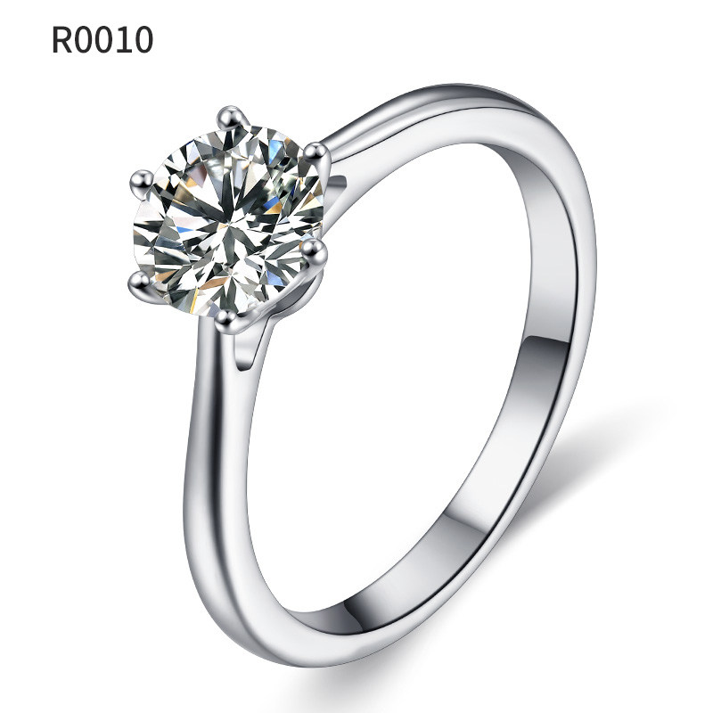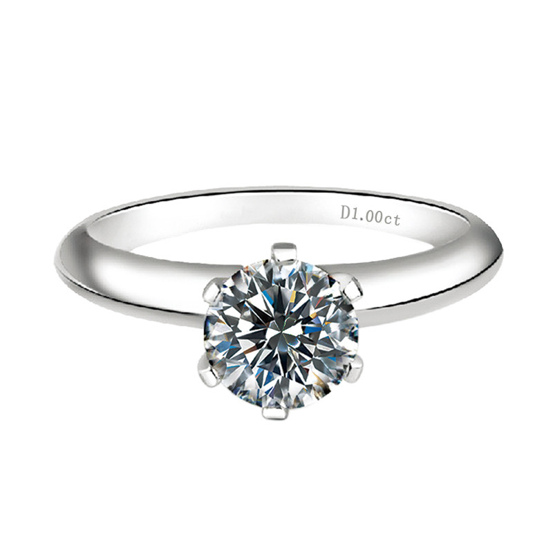 MOKA 123克拉镶嵌莫桑石情侣结婚对戒指纯银镀铂金六爪指环女钻戒